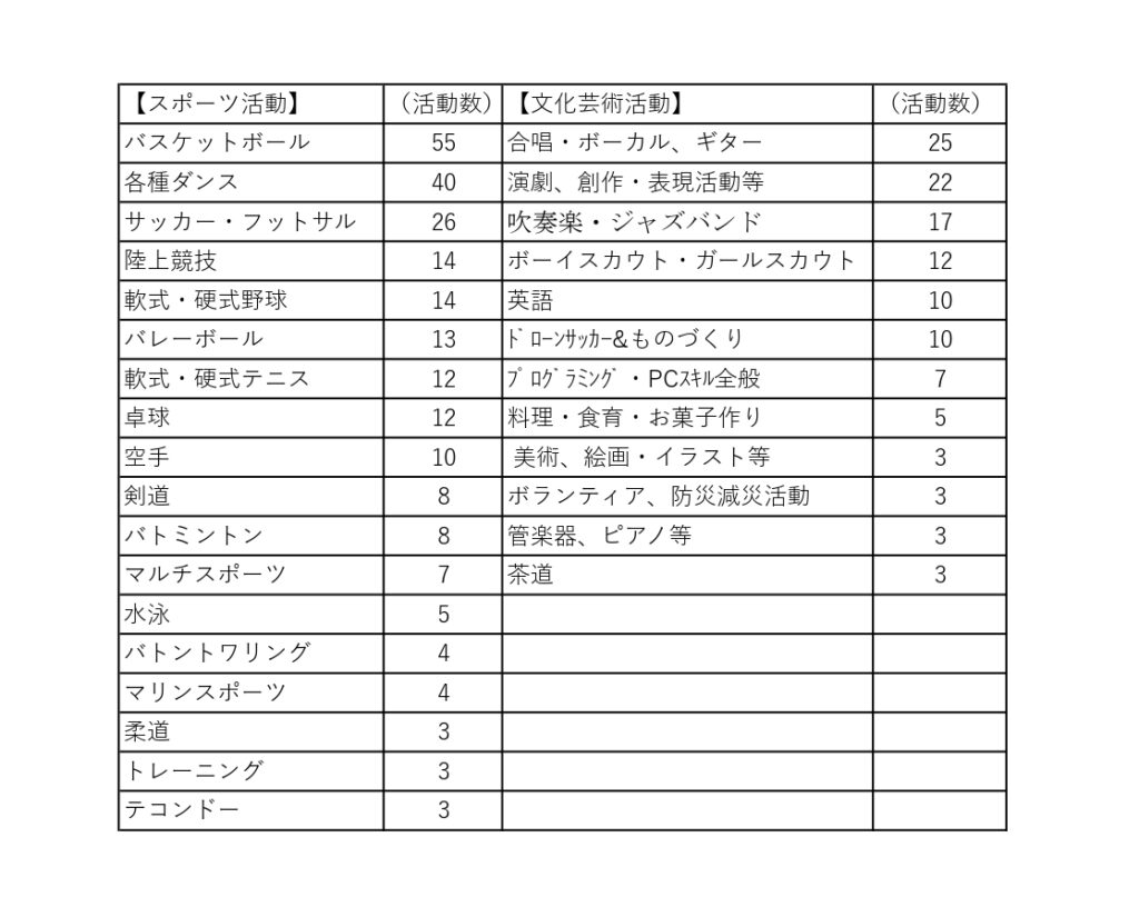 現在のプレみや倶楽部登録状況は、スポーツ268活動、文化芸術139活動の合計407活動です。