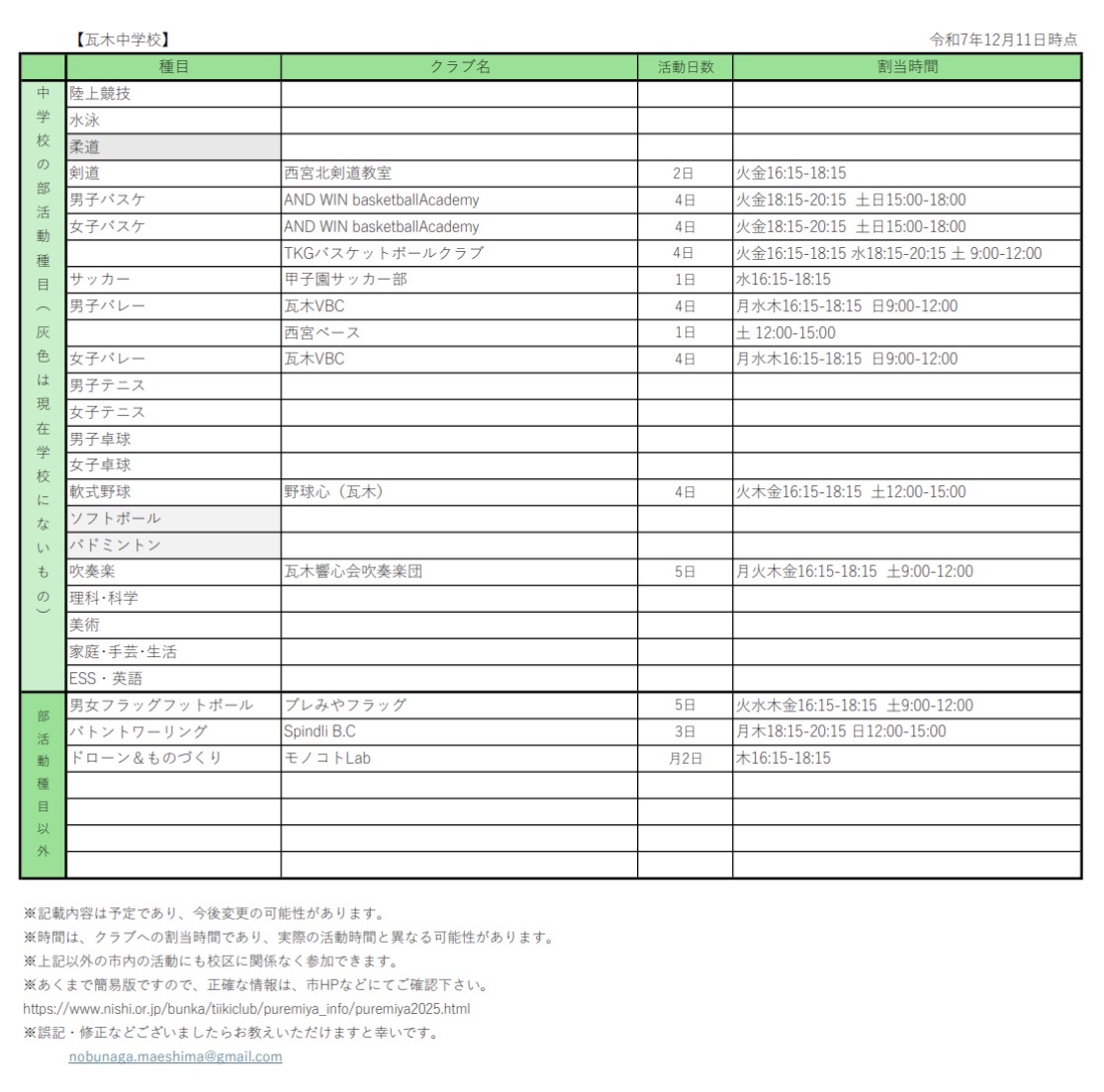 わかり易いように、学校毎に、活動するプレみやクラブを一覧にまとめてみました。
