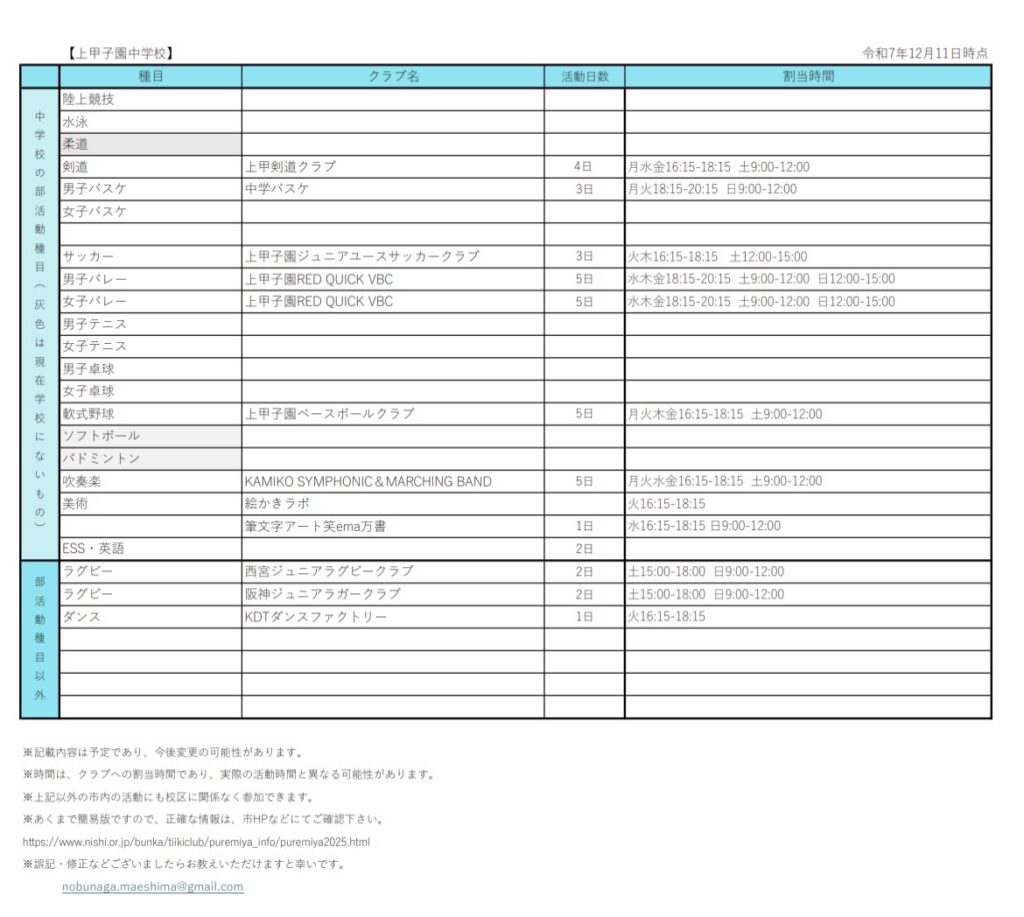 わかり易いように、学校毎に、活動するプレみやクラブを一覧にまとめてみました。