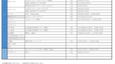 西宮市立上ヶ原中学校で活動予定のプレみやクラブをまとめてみました(上ヶ原中学校分)。